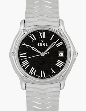 Ebel Stainless steel case and bracelet Black roman dial Date indicator at the 3 mark Scratch resistant sapphire crystal Swiss quartz movement water resistant to 50M